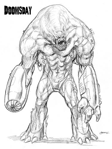 These designs were done for an unproduced movie "Superman Lives" starring Nicolas Cage